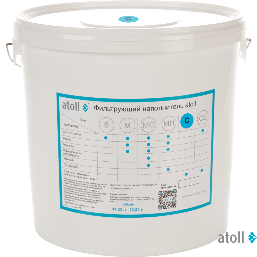 Фильтрующий наполнитель atoll С (кокосовый активированный уголь) для систем водоподготовки.