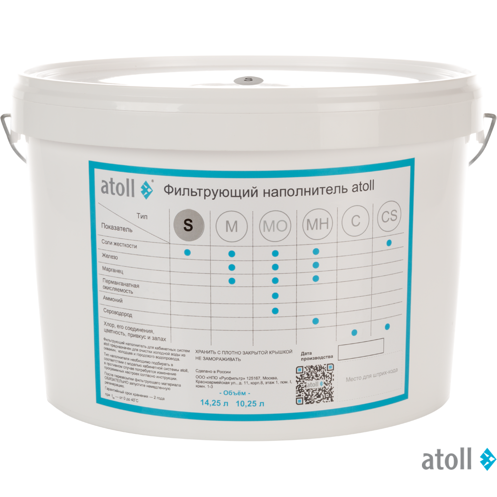 Фильтрующий наполнитель atoll S предназначен для очистки воды из городского водопровода, скважины или колодца. Помимо солей жесткости эффективно удаляется растворенное железо концентрацией до 3 мг/л — благодаря ионообменной смоле мелкой фракции.