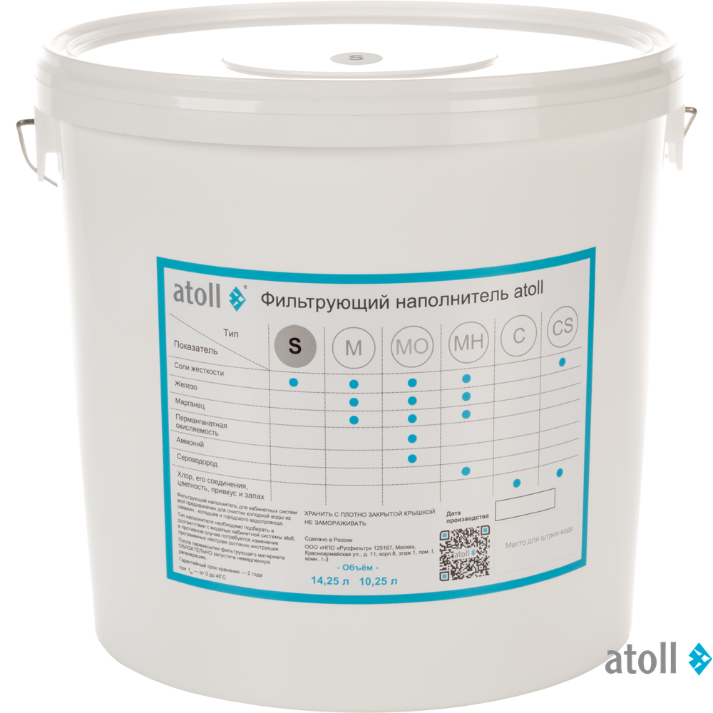Фильтрующий наполнитель atoll S предназначен для очистки воды из городского водопровода, скважины или колодца.