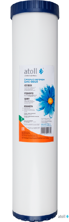 Картриджи atoll серии GAC для сорбционной угольной очистки воды: удаляют хлор, неприятный вкус и запах воды