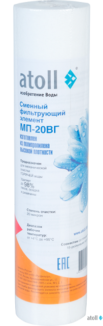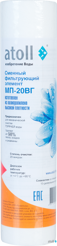 Картриджи atoll серии МП типоразмера Slim-Line 10" для механической очистки воды: удаляют нерастворимые частицы, глину, песок, ржавчину и т.п.