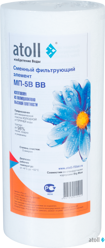 Картриджи atoll серии МП типоразмера Big Blue для механической очистки воды: удаляют нерастворимые частицы, глину, песок, ржавчину и т.п.
