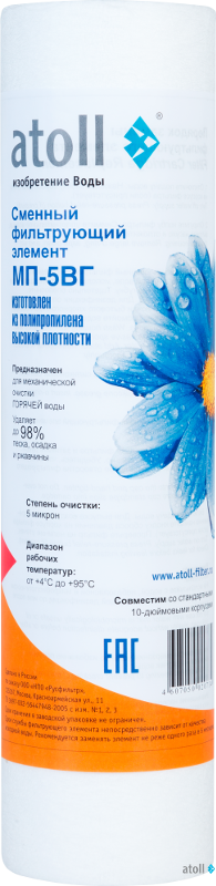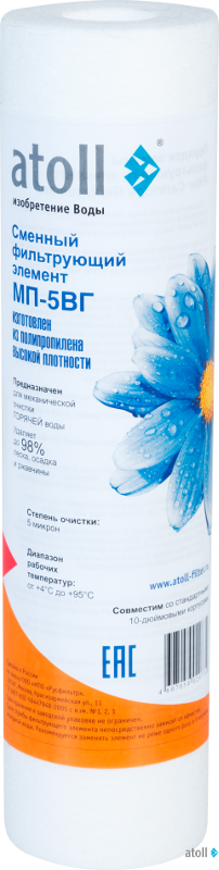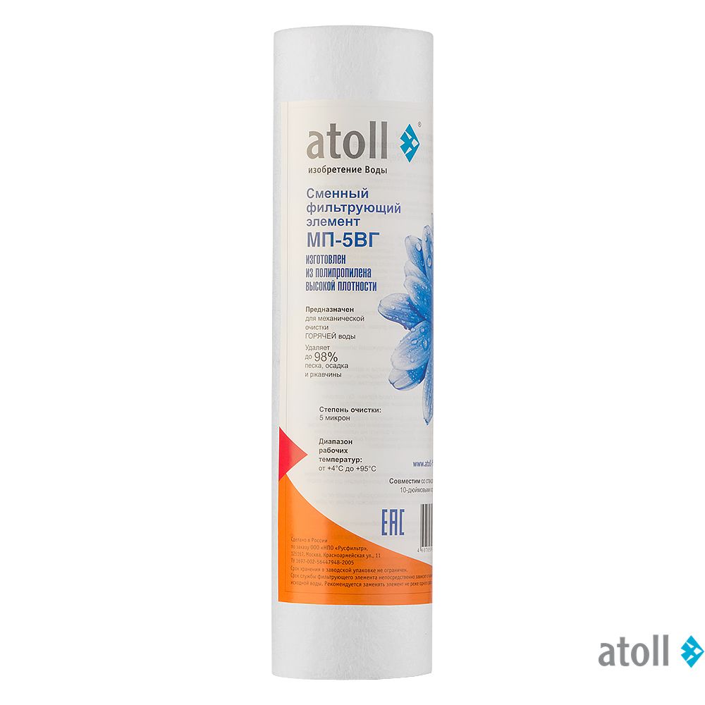 Картриджи atoll серии МП типоразмера Slim-Line 10" для механической очистки воды: удаляют нерастворимые частицы, глину, песок, ржавчину и т.п.