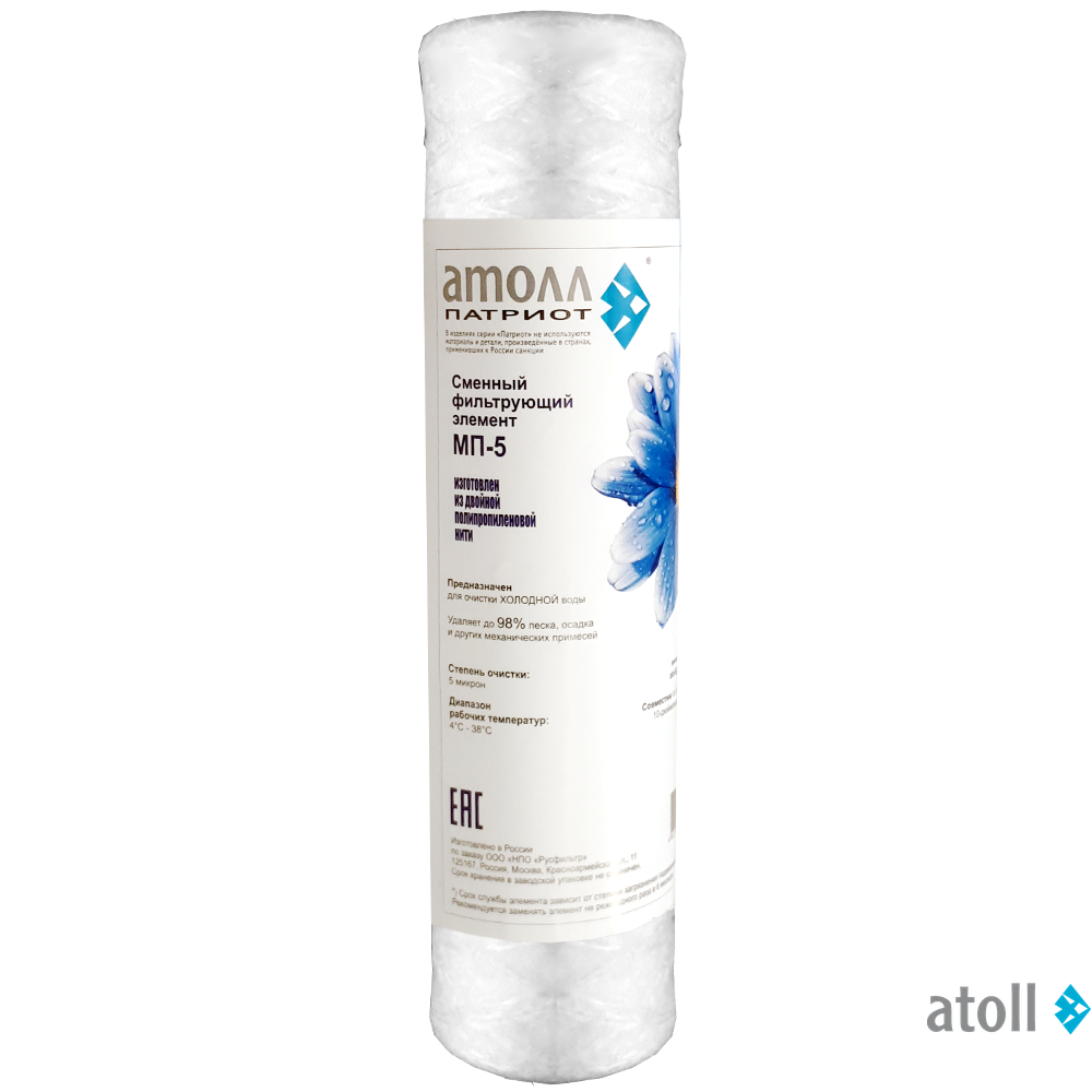Картриджи atoll серии МП-5 Патриот (намотка, полипропилен) для механической очистки воды: удаляют нерастворимые частицы, глину, песок, ржавчину и т.п.