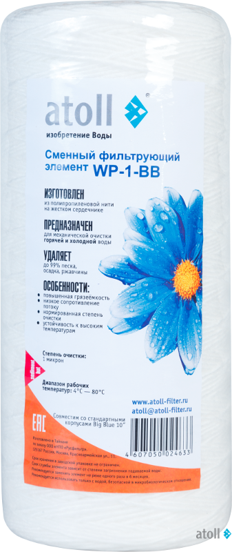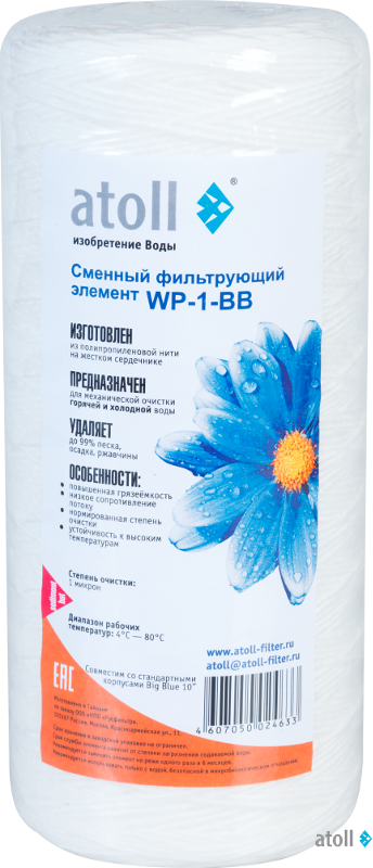 Картриджи atoll серии WP для механической очистки воды: удаляют нерастворимые частицы, глину, песок, ржавчину и т.п.