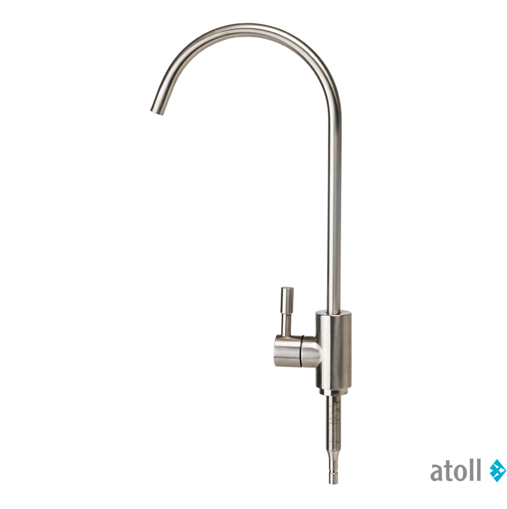 Кран питьевой воды atoll F-304SS служит для подачи чистой питьевой воды из фильтра, монтируется на столешнице или мойке.