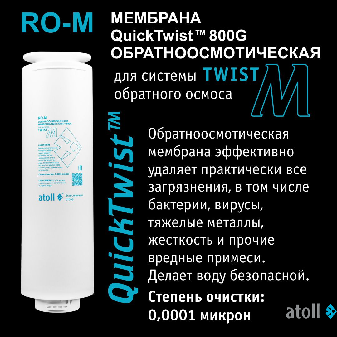 Мембрана обратноосмотическая atoll TWIST RO-M - эффективно удаляет практически все загрязнения в том числе бактерии и вирусы. Делает воду безопасной.