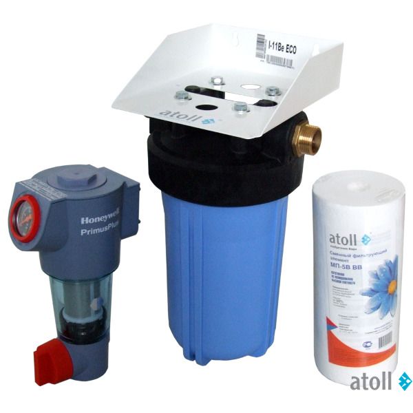- Магистральный фильтр atoll I-11B Eco с картриджем тонкой механической очистки, предназначен для финишной обработки воды от мельчайших частиц и взвесей размером более 5 мкм.