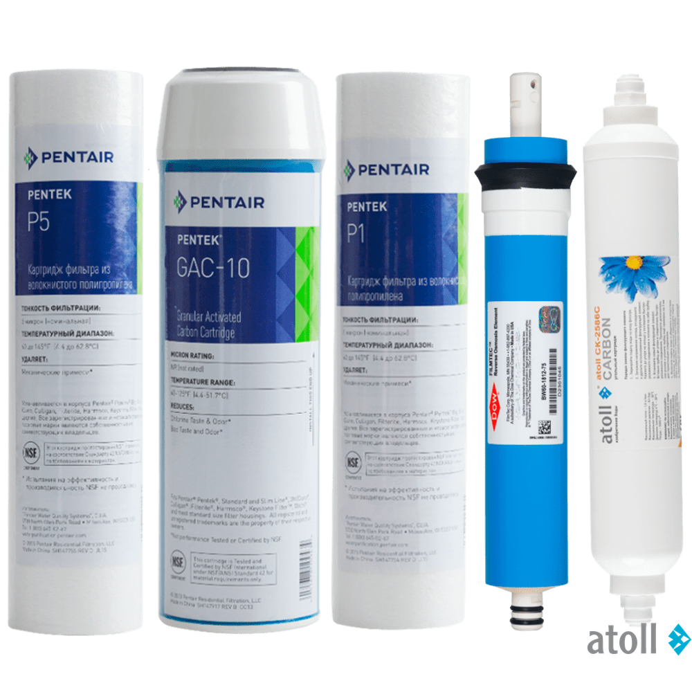 Набор предназначен для использования входящих в его комплект картриджей для периодической замены использованных элементов в системах обратного осмоса торговой марки atoll. Все сменные фильтрующие элементы, входящие в этот набор, имеют стандартные типоразмеры, и могут быть использованы для большинства фильтров других производителей.