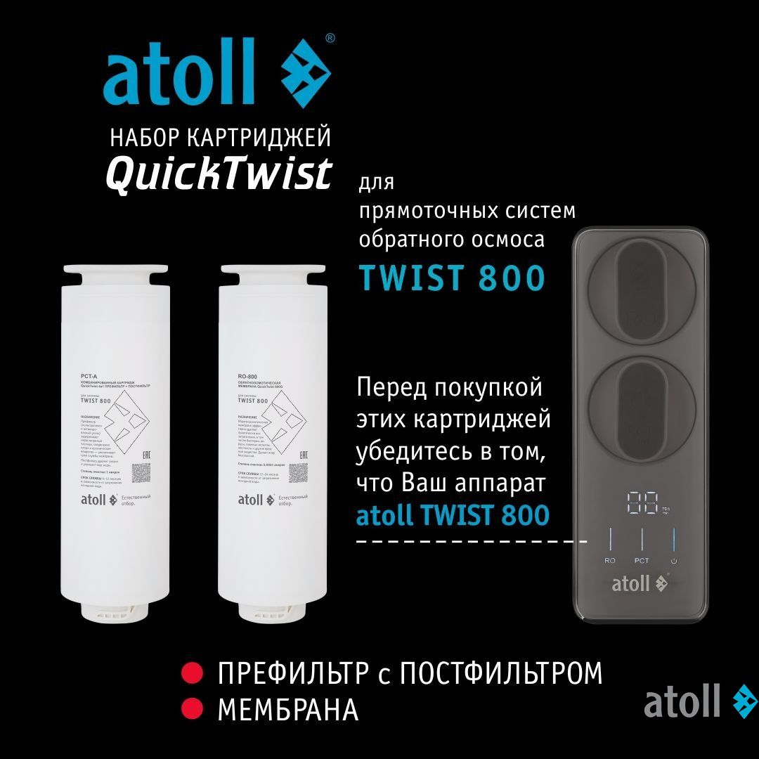 | Наборы картриджей | набор для atoll TWIST 800 (префильтр+постфильтр х 2шт.) |