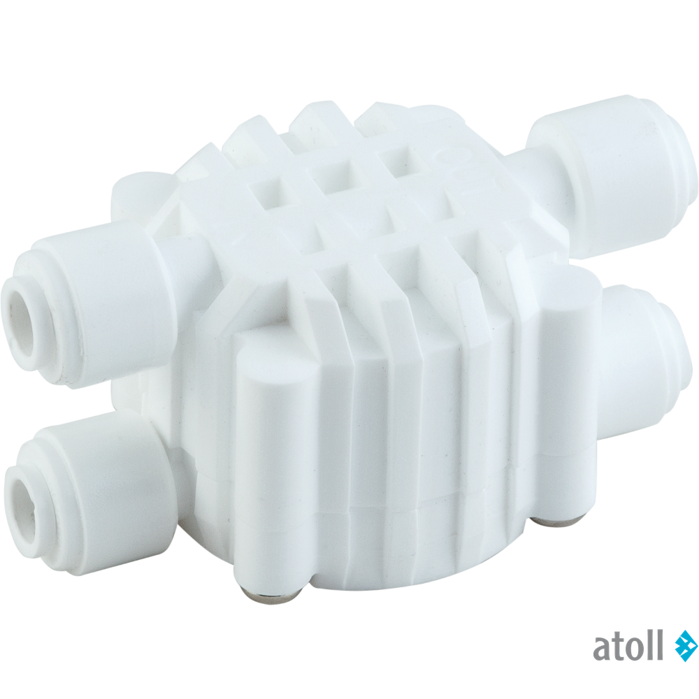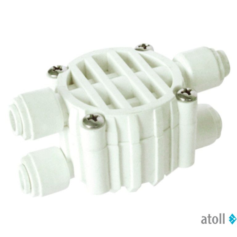 Отсечной клапан четырехходовой Atoll CV0201 (ASV4000) для систем обратного осмоса выполняет функцию распределения потоков. Защищает мембрану от холостого хода воды. Подходит для классических систем обратного осмоса любых производителей.