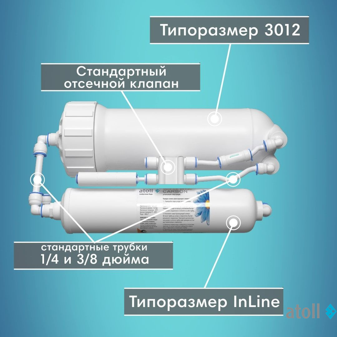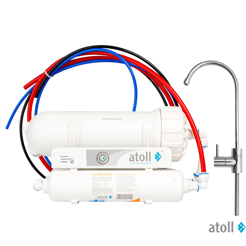 Прямоточный фильтр - atoll ShuttleA-3800 STDA относится к категории сверхкомпактных бытовых фильтров обратного осмоса прямоточного типа (работает без накопительного бака).