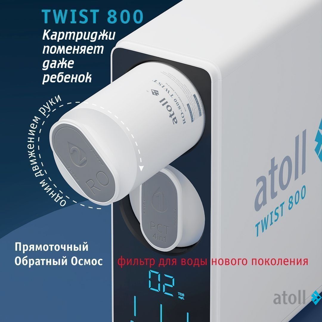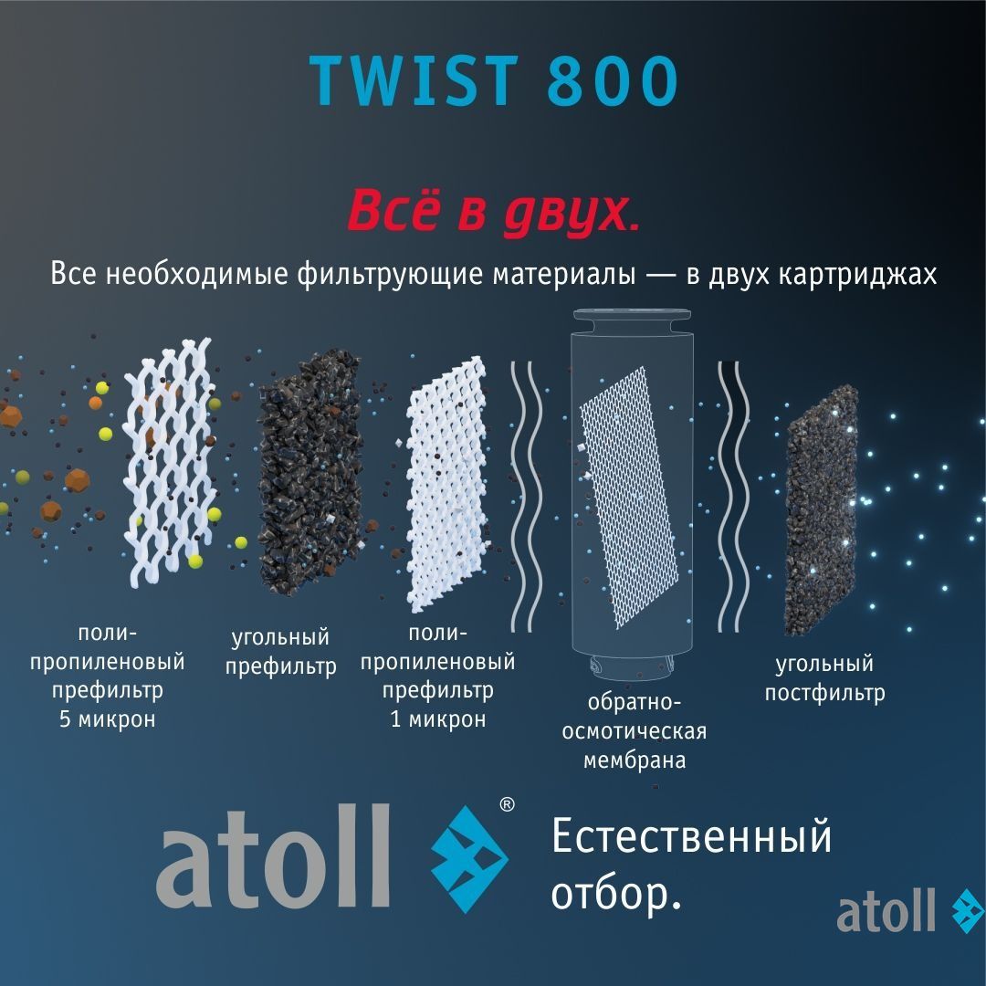 - Картридж atoll PCT-A TWIST вмещает в себе 4 ступени очистки: