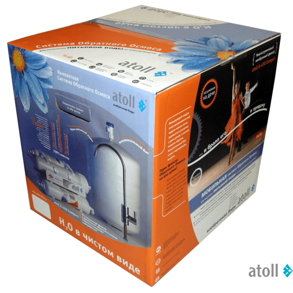Системы должны быть установлены в помещении, не допускающем замерзания воды. В противном случае возможно повреждение колб и протечка воды.При покупке фильтра атолл, рекомендуется подбирать его исходя из предполагаемого потребления очищенной воды - с большей или меньшей производительностью, определяемой основным фильтрующим элементом – мембраной. Качество очистки воды различными моделями обратноосмотических систем одинаково при использовании сертифицированных сменных фильтрующих элементов.