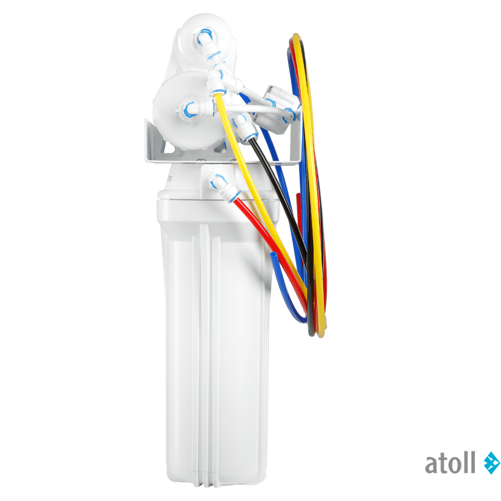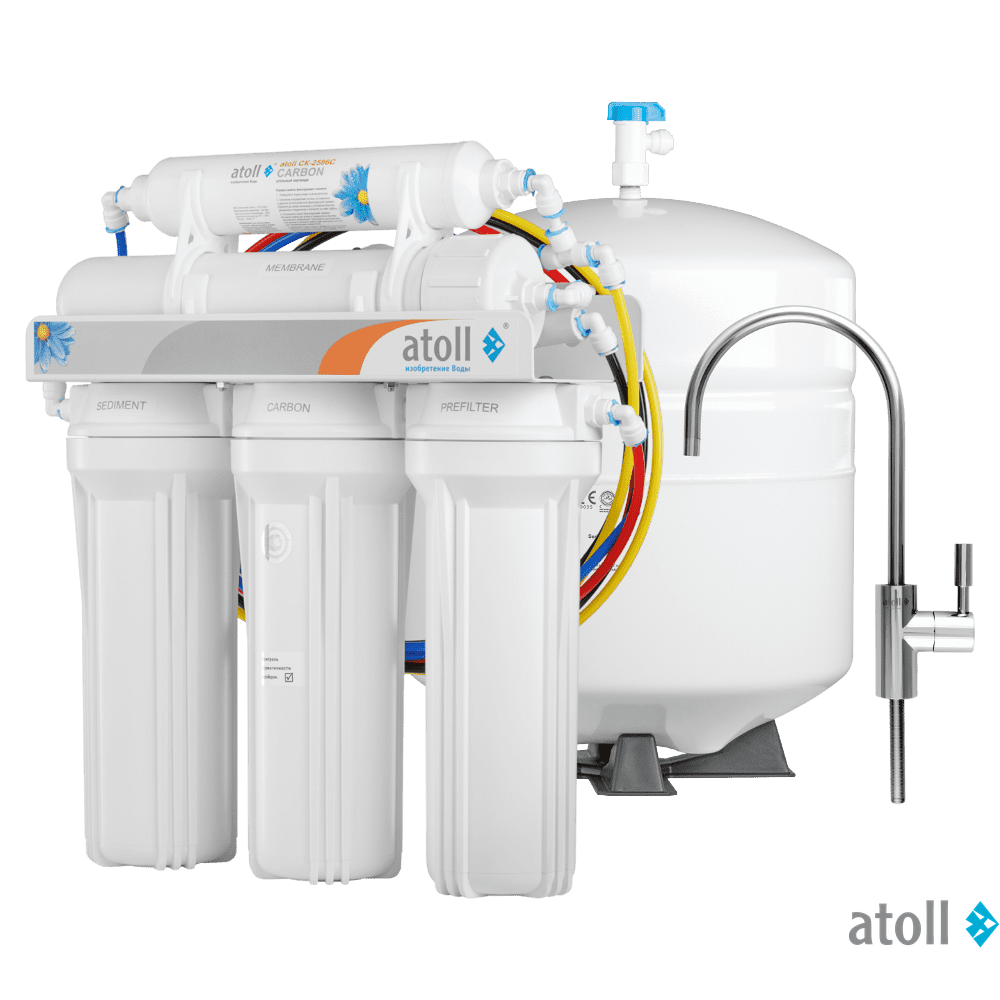 Atoll A-550 STDA — это система обратного осмоса для очистки холодной питьевой воды (5 ступеней). Процесс фильтрации на основе полупроницаемости полиамидной тонкопленочной мембраны исключает применение химических веществ.