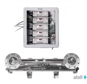 - Система VIQUA SHFM-290/2 отличается пятью мощными излучателями с двойным выходом УФ излучения и 4'' фланцевыми подсоединениями.